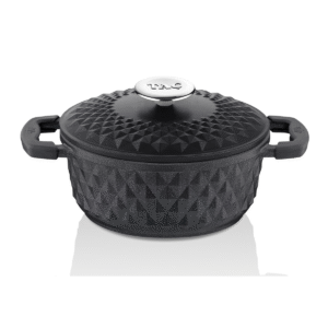 Bu tencere Alüminyum Döküm malzemeden yapılmış olup, üzerine granit kaplama uygulanmıştır. 20 cm çapında ve 2 litrelik derin bir yapıya sahiptir. Döküm kapağı, pişirme performansını destekler. Yanmaz yapışmaz iç yüzeyi sayesinde konforlu bir pişirme sunar. Silikon aparatları sayesinde ısınan kulpları tutmak kolaylaşır. İndüksiyon hariç diğer tüm ocaklarla uyumludur.